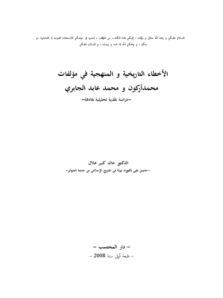 0284 الأخطاء التاريخية و المنهجية في مؤلفات محمد أركون و محمد عابد الجابري دراسة نقدية تحليلية هادفة كتاب صيغة ورد وورد word