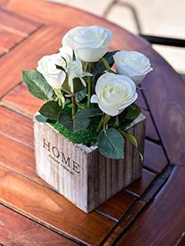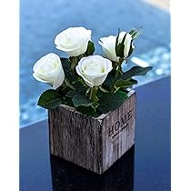 yatai لمسة حقيقية زهور صناعية مزروع في أصيص النباتات الخشبية في الأواني الخشبية النباتات الصغيرة الزهور وهمية للمنزل والمكتب الأخضر ديكور الطاولة قطعة مركزية أبيض amazon ae